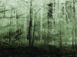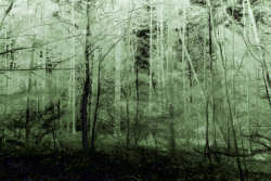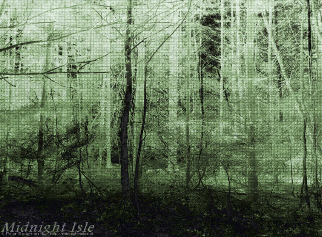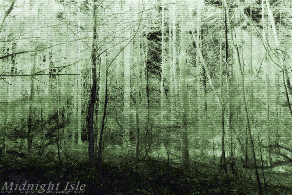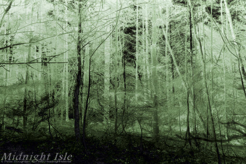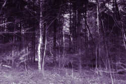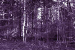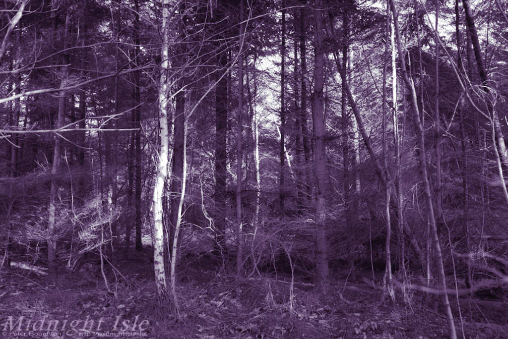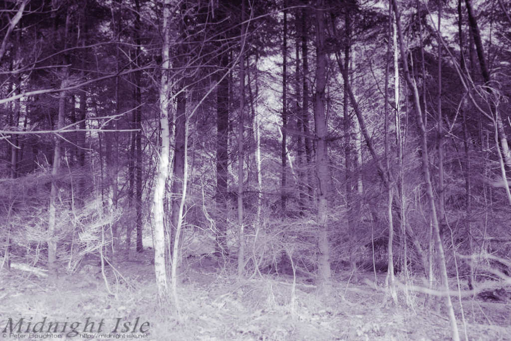 It started with a nothing shot of some trunks and branches, converted to mono and split toned with grey and purple.