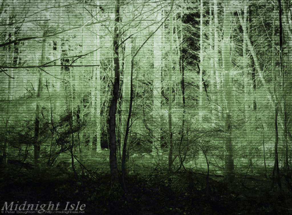 The binary overlay was randomly generated via a simple script I wrote to fill the screen with digits; white text on black background, blended 50% Dodge.