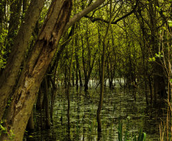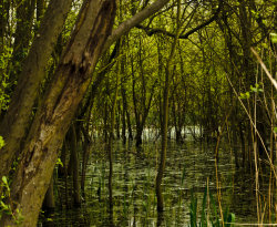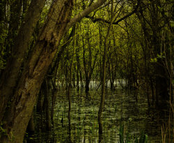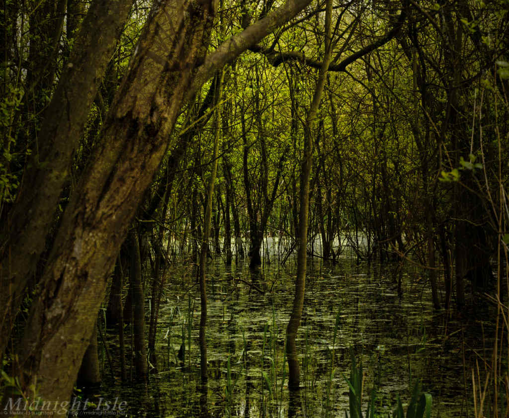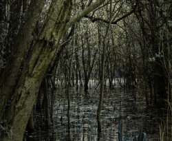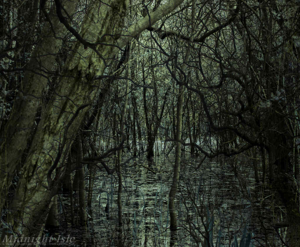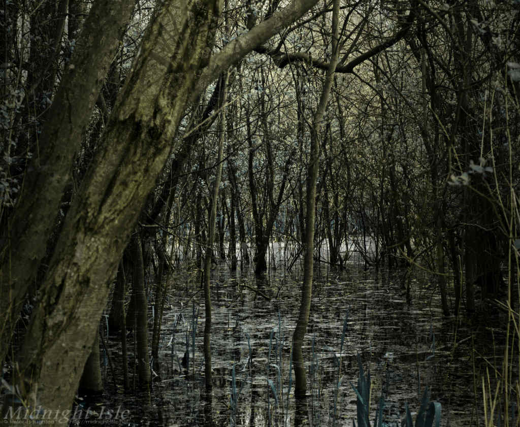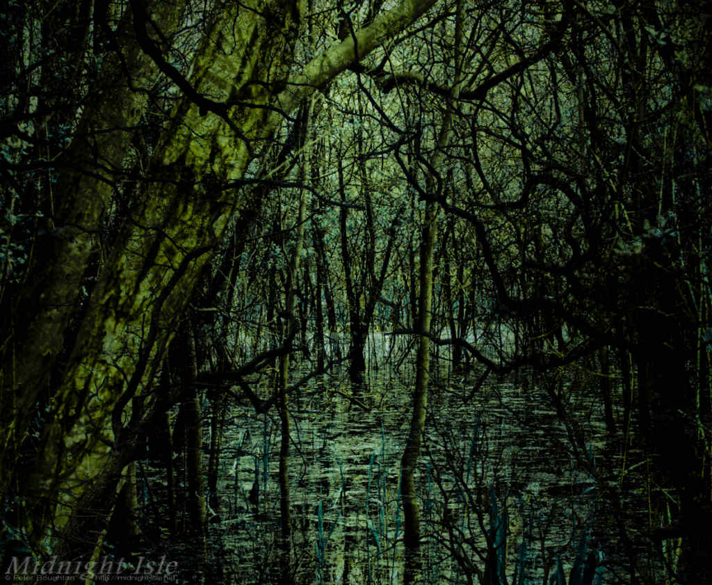 Sometimes it can be a long time between photographic capture and realisation of an image. This one began life back in 2012, whilst out walking along by a lake that had flooded and caused a swamp-like area amongst some trees, but it was a couple of years later before the image emerged.