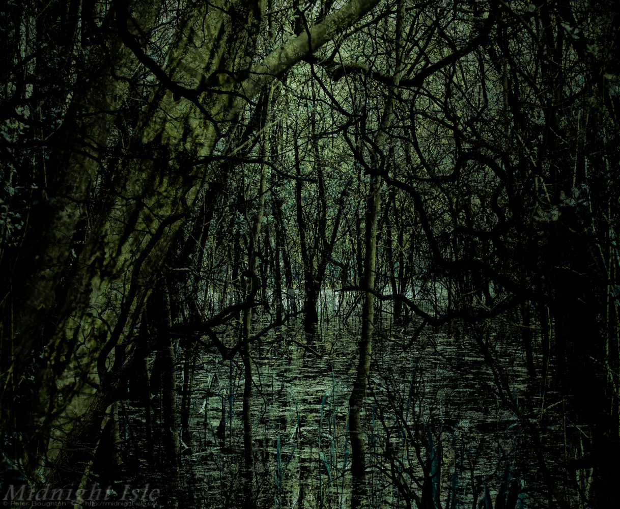 Sometimes it can be a long time between photographic capture and realisation of an image. This one began life back in 2012, whilst out walking along by a lake that had flooded and caused a swamp-like area amongst some trees, but it was a couple of years later before the image emerged.